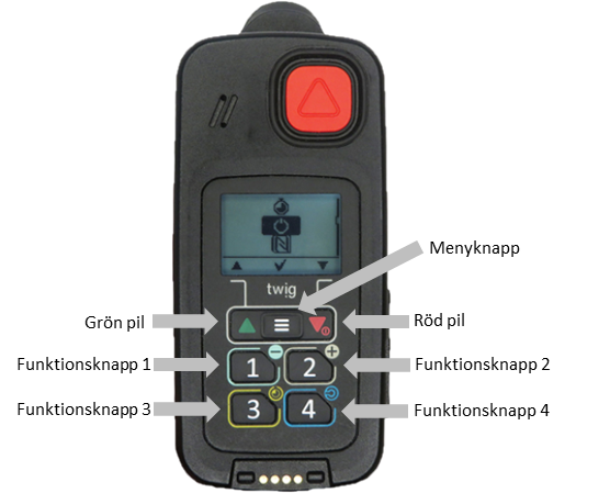 Timern är inställd på den tid du har valt. När det är 5 minuter kvar börjar larmet pipa och räkna ned. Då visas en digital klocka i displayen som räknar ned hur många sekunder det är kvar till att larmet skickas. Under dessa 5 minuter har ni tid att kvittera larmet genom att trycka på röd pil innan det skickas vidare till larmcentralen. Observera att timerfunktionen är fortsatt aktiv efter detta. Trycker ni inte på röd pil under denna tidsperiod kommer enheten skicka iväg ett larm till larmcentralen.